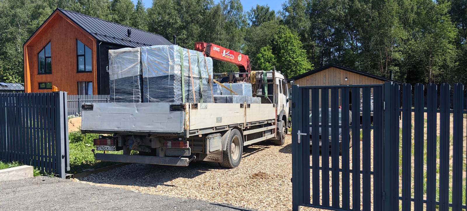 Такой вид доставки отлично подходит для частных заказов. Манипуляторы бывают разных типов и грузоподъемности, поэтому если в вашем поселке есть ограничения по габаритам, весу, осям автомобилей, обязательно сообщите об этом.